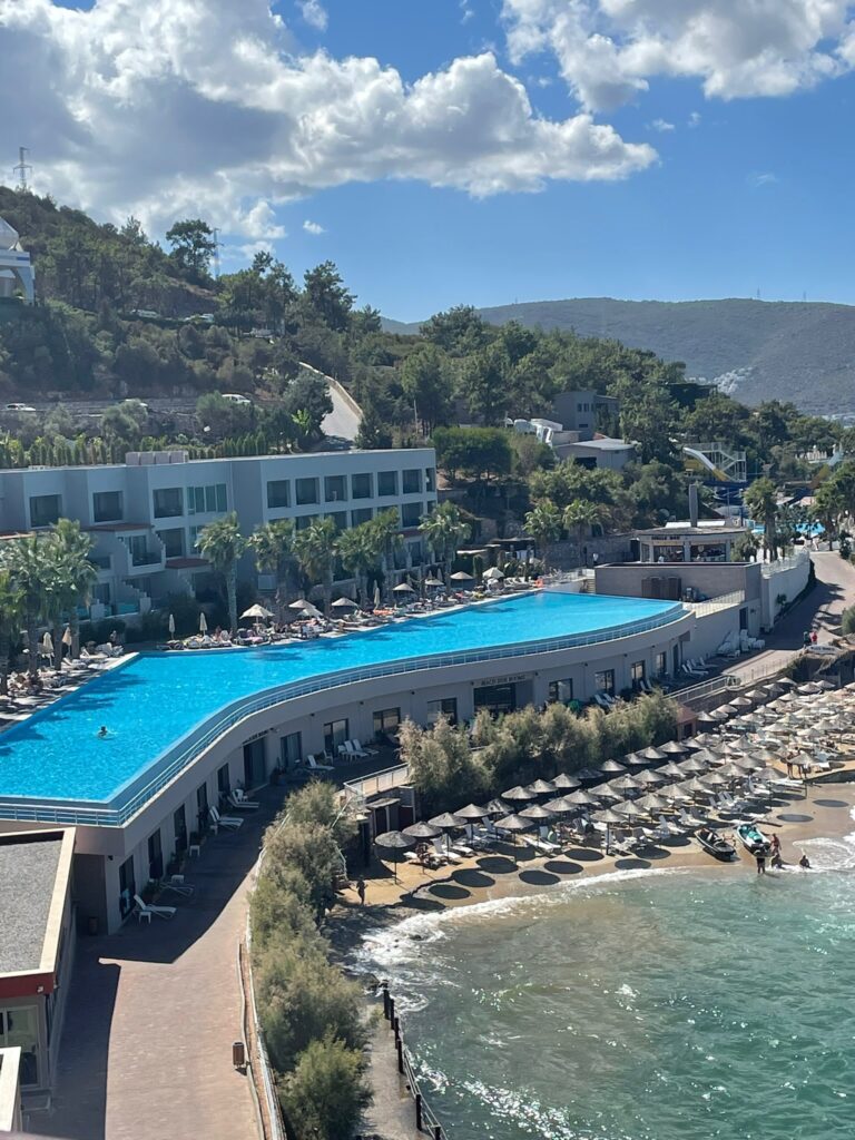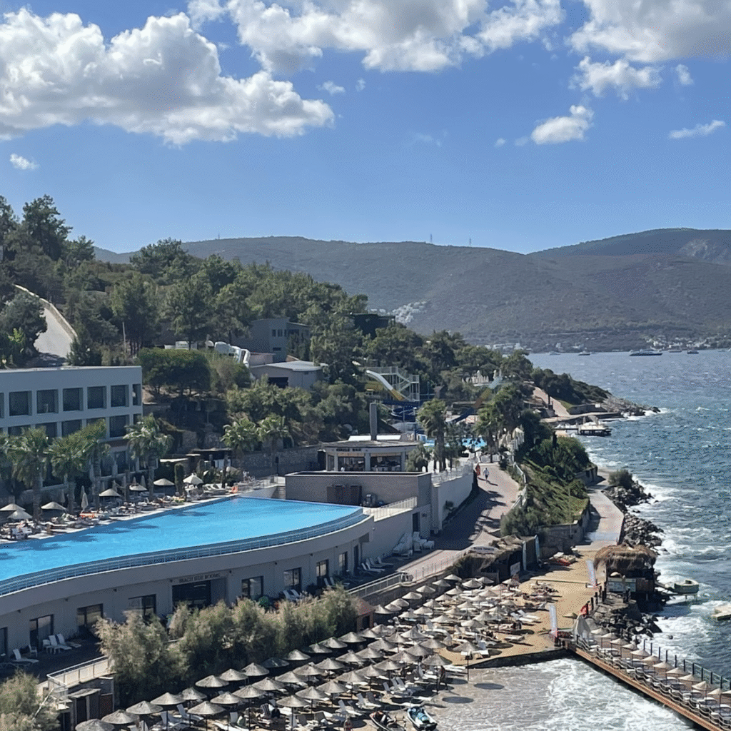 Hotel leży w Torba, około 10 km od centrum Bodrum i 25 km od lotniska Milas-Bodrum. To doskonałe miejsce dla osób, które chcą zwiedzać i korzystać z atrakcji miasta, a jednocześnie wracać do spokojniejszej zatoki. Największym atutem jest 700-metrowa prywatna plaża z molo i kameralnymi cabanas.