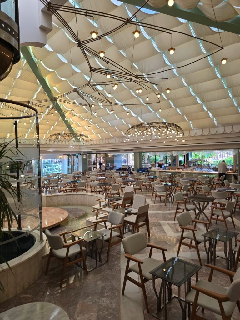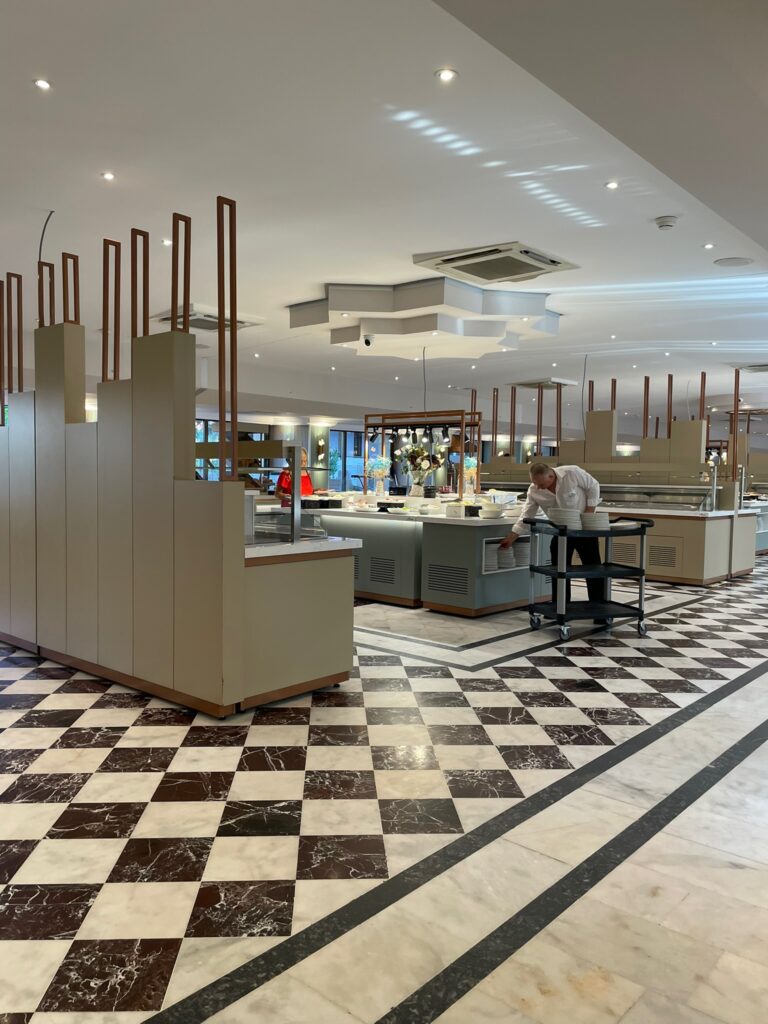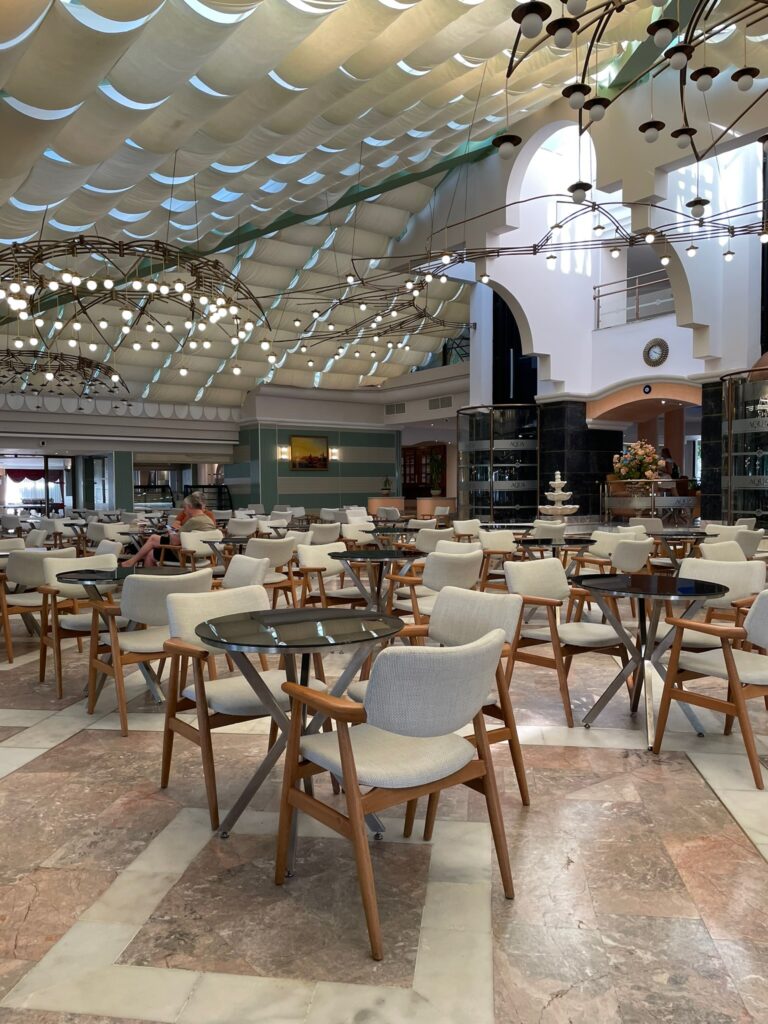 • Restauracje: główna bufetowa + restauracje à la carte (m.in. rybna, włoska, turecka).