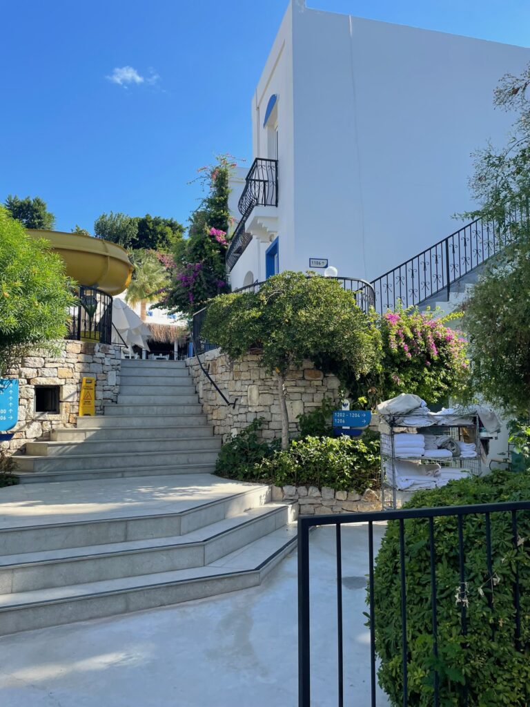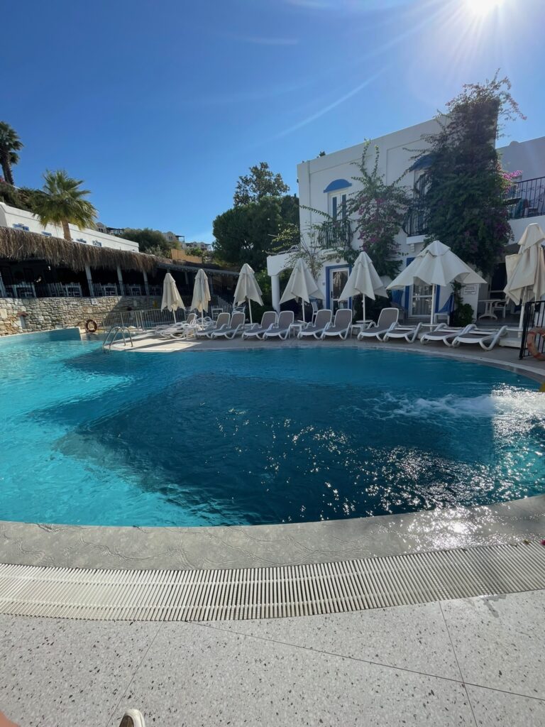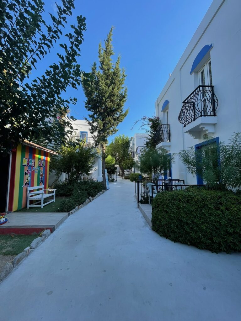 Hotel znajduje się w Bitez, jednej z malowniczych zatok niedaleko Bodrum, oddalonej o około 5 km od centrum miasta i 40 km od lotniska Milas-Bodrum. Do plaży jest zaledwie 250 metrów, a w okolicy rosną gaje pomarańczowe, które nadają miejscu wyjątkowego uroku. To lokalizacja idealna dla rodzin i tych, którzy chcą połączyć wypoczynek z możliwością krótkiego wypadu do Bodrum.