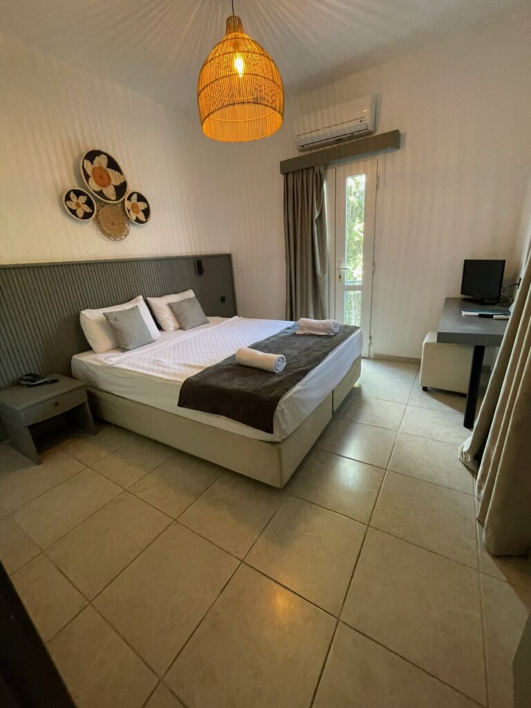 • Pokoje są proste, ale funkcjonalne, z balkonem lub tarasem. Wyposażenie obejmuje klimatyzację, łazienkę i widok na ogród lub basen.