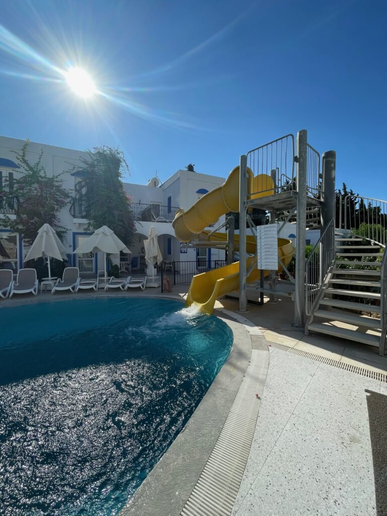 • Plaża: około 250 metrów od hotelu – publiczna, ale dobrze zagospodarowana, z możliwością wynajęcia leżaków.