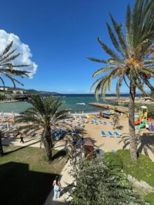 - Plaża: prywatna, czysta, bez fal – idealna do pływania. Leżaki i parasole dostępne bezpłatnie.