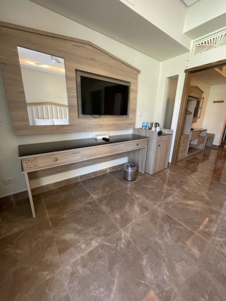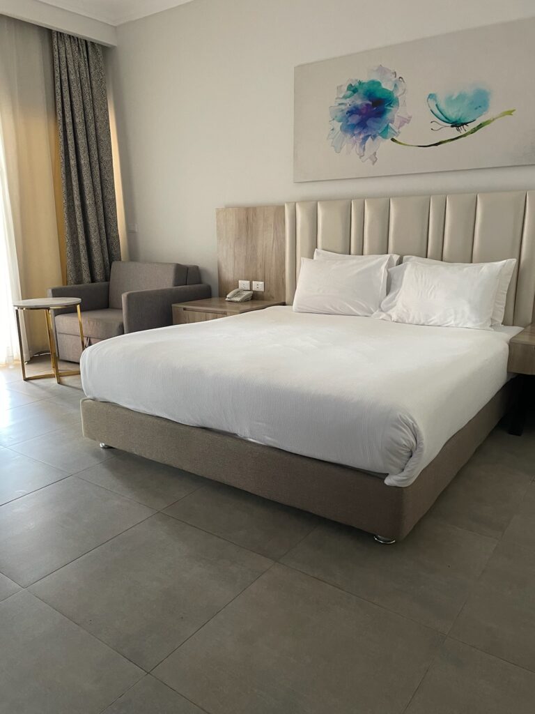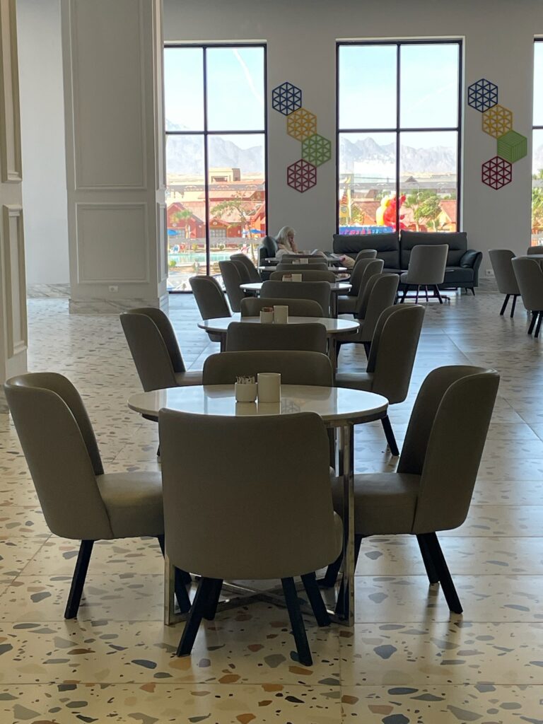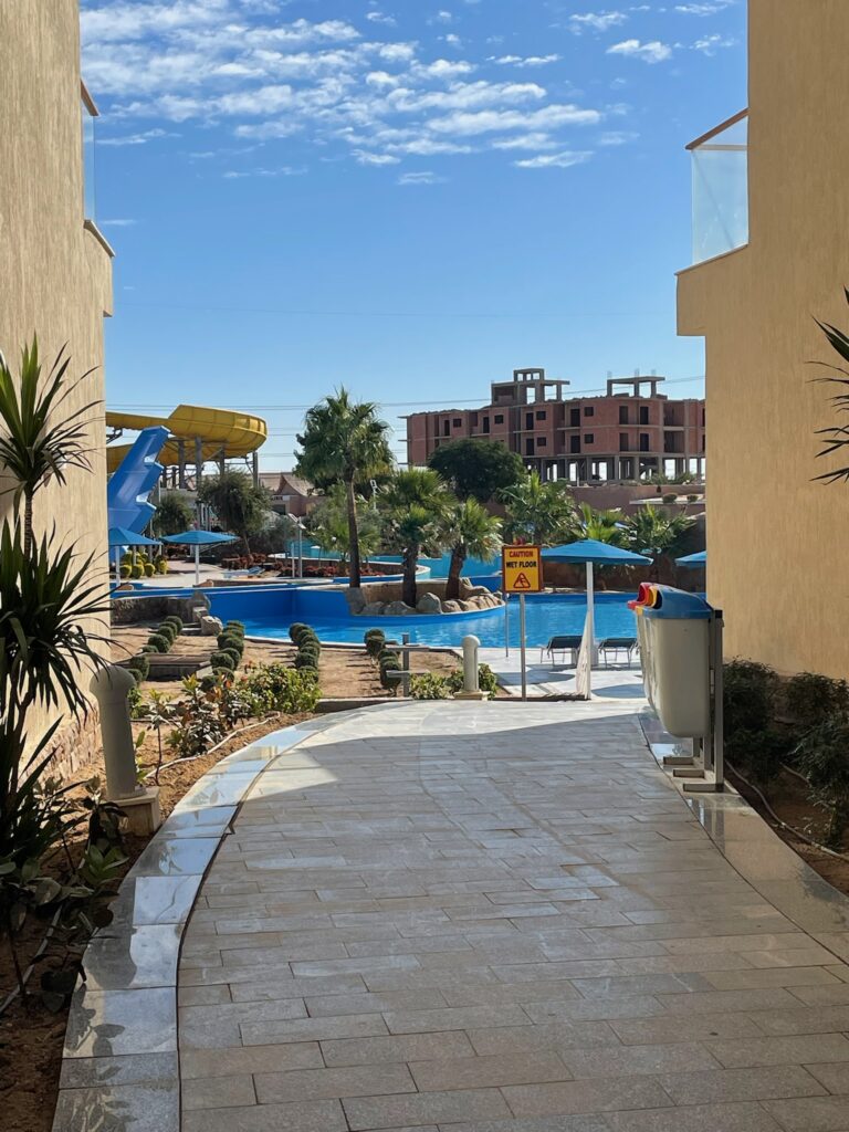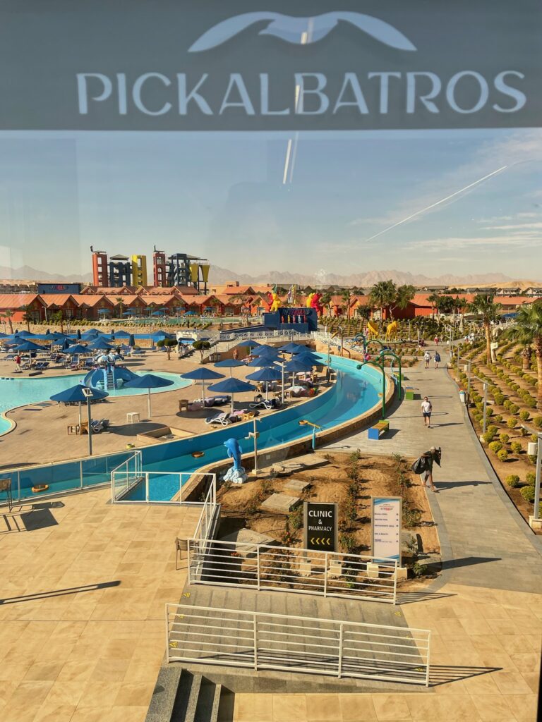 Hotel znajduje się w Hurghadzie, przy drodze prowadzącej do Safagi, około 20 minut jazdy od lotniska. To wygodne położenie sprawia, że łatwo tu dotrzeć, a jednocześnie resort działa jak samowystarczalne miasteczko – właściwie nie trzeba go opuszczać, bo atrakcji jest pod dostatkiem.