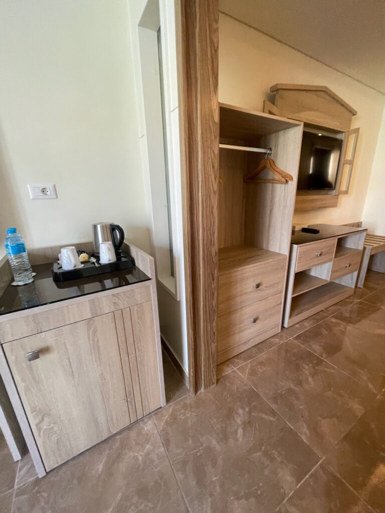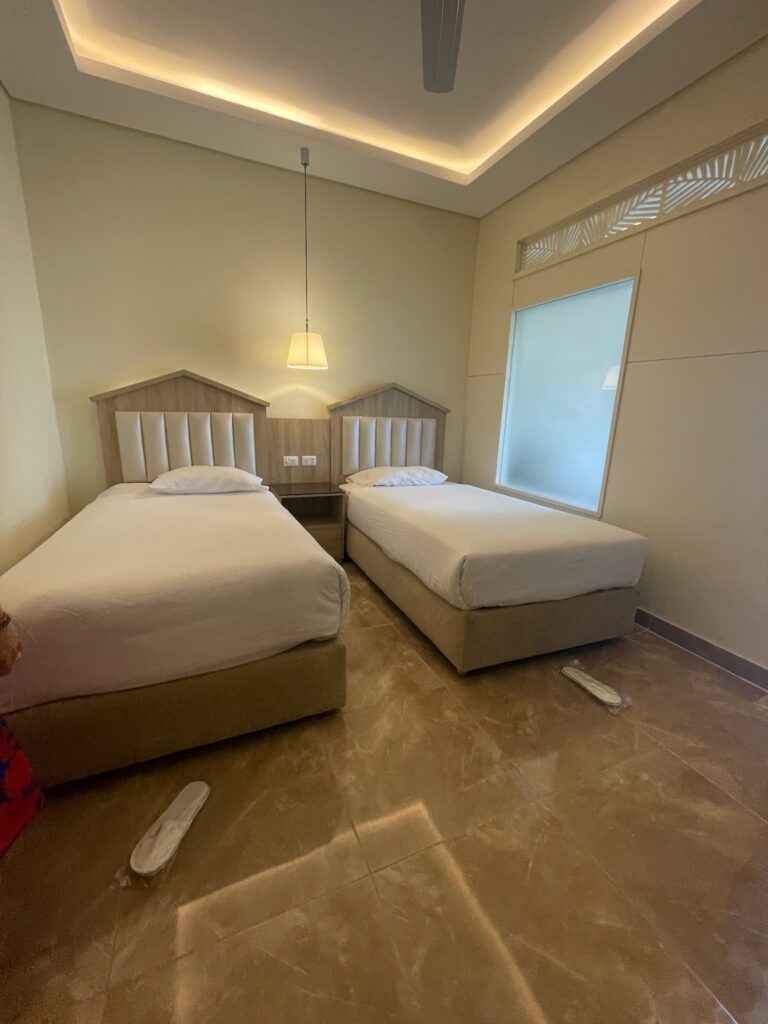 - Hotel nie leży bezpośrednio przy plaży – zapewnia bezpłatny transport shuttle na prywatny odcinek wybrzeża z leżakami i parasolami.