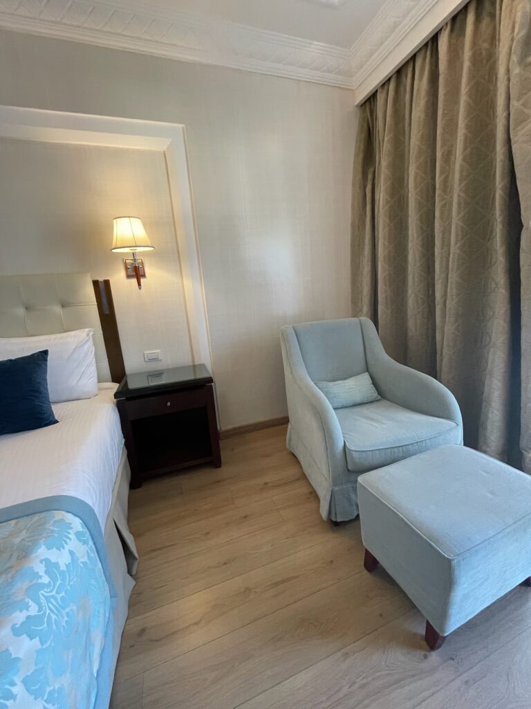 - Wyposażenie: minibar, sejf, klimatyzacja, eleganckie łazienki.