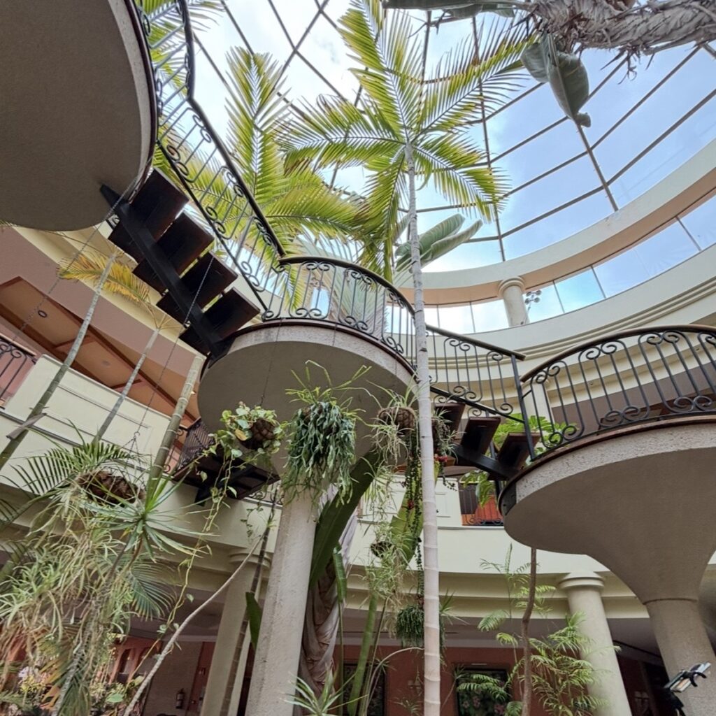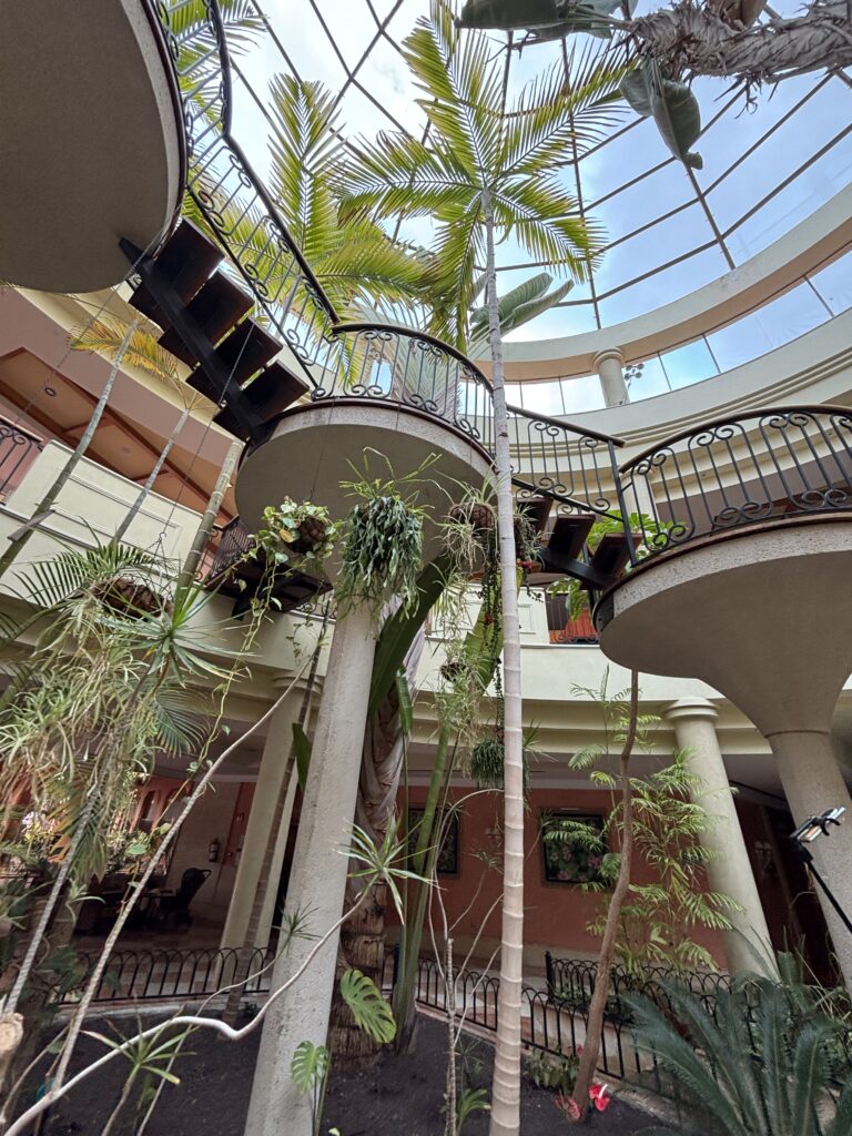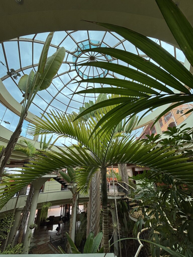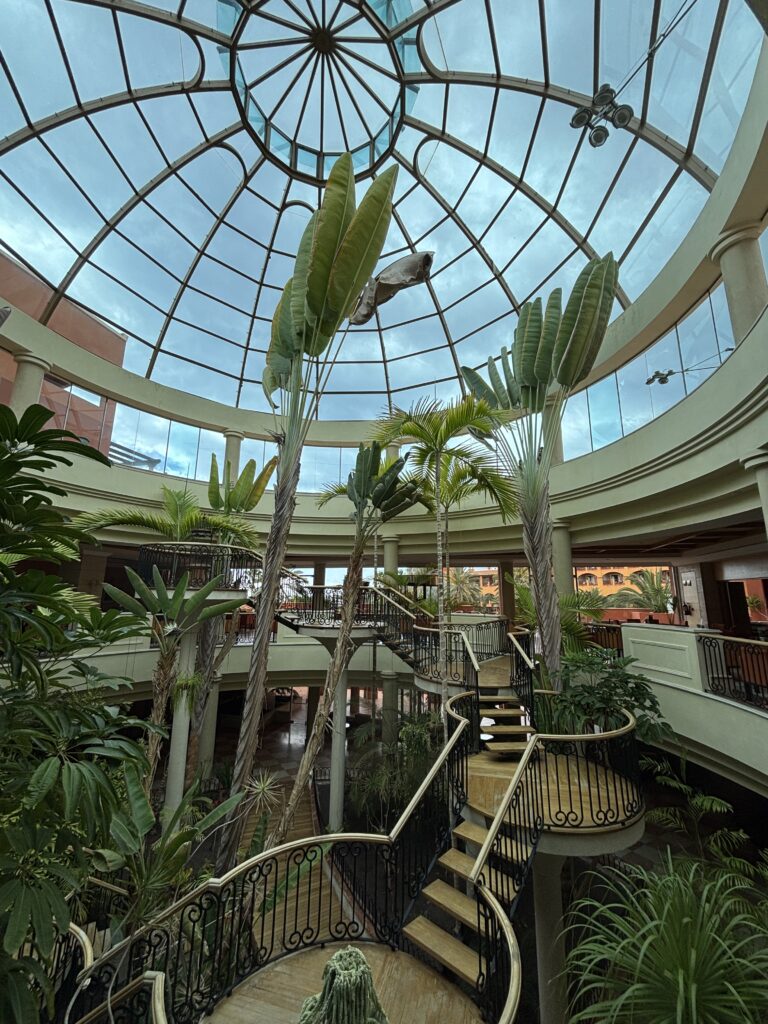 Styl: elegancki, przestronny, z elementami kanaryjskiej architektury, otoczony palmami i ogrodami.