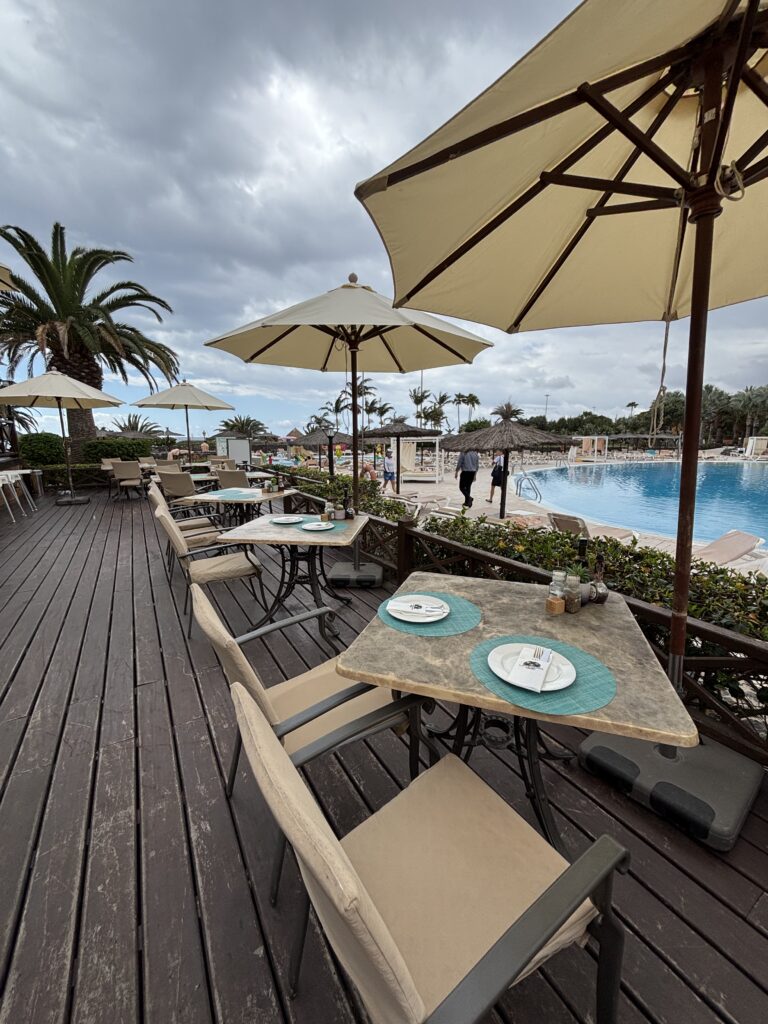 - Baseny: kilka odkrytych basenów, w tym basen dla dzieci oraz tarasy słoneczne z leżakami i parasolami.